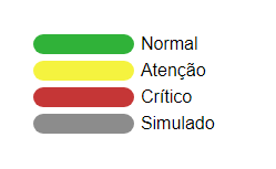 Exibe os seguintes status do item referente a políticas de estoque: - Normal - Atenção - Crítico - Simulado