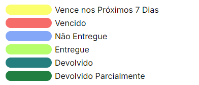 Exibe a situação do equipamento de acordo com os filtros informados. As opções podem ser: - Vence nos Próximos 7 Dias - Vencido - Não Entregue - Entregue - Devolvido - Devolvido Parcialmente