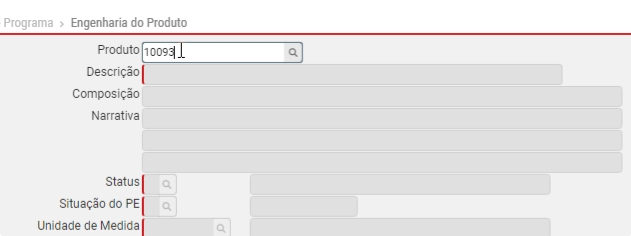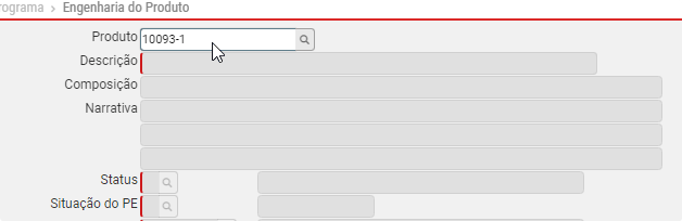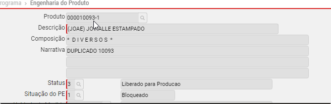 Na opção *Engenharia*, é possível consultar um produto a partir do Código do Produto, exibindo todas as engenharias cadastradas, junto com as principais informações do cadastro.